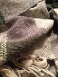 - The “Helene” Blanket. A moody mix of purples, green, blue and a dash of pink. Mysterious, happy, comforting.Merino, 40 x 88 with fringe
